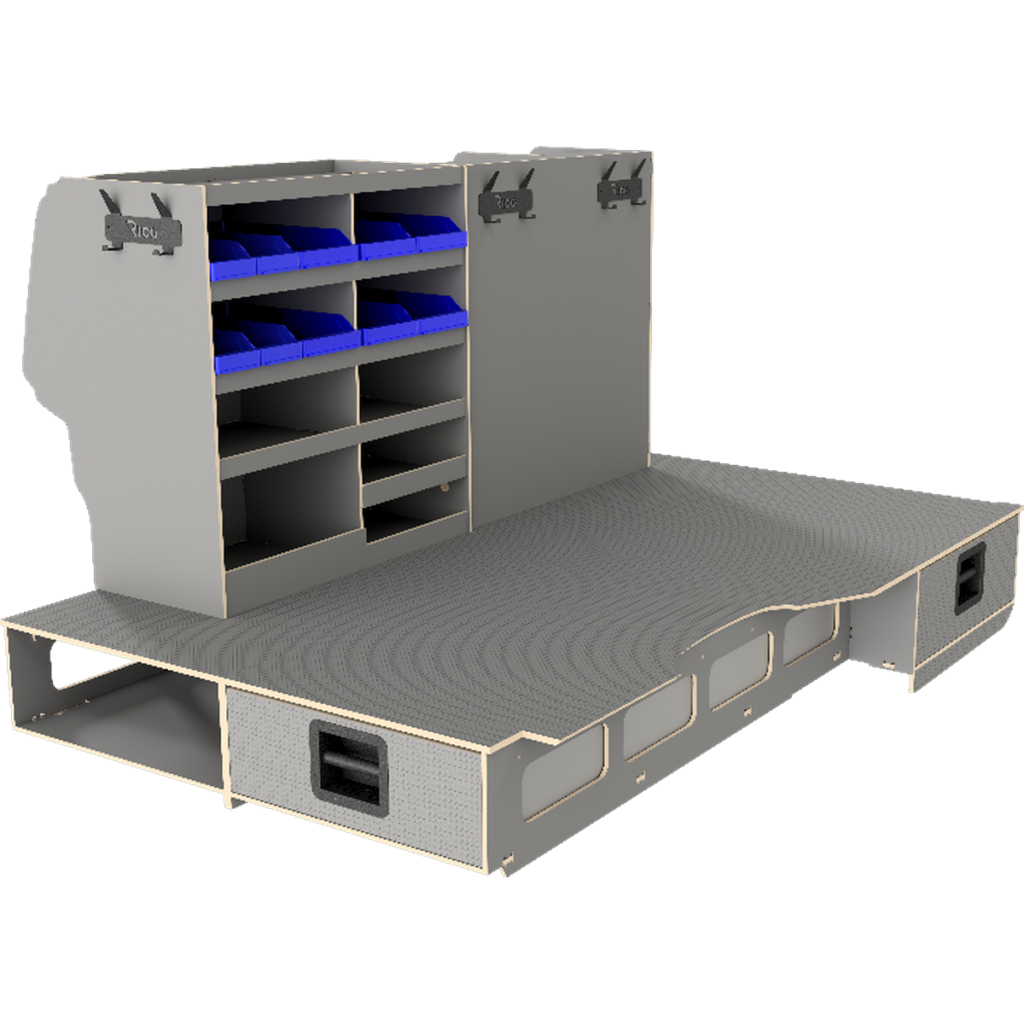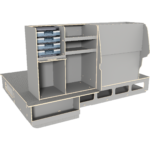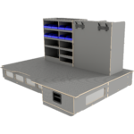 We have designed our raised double floor where long drawers provide easy access to materials and we always recommend sliding doors on both sides of the vehicle so that the user never has to enter the vehicle.