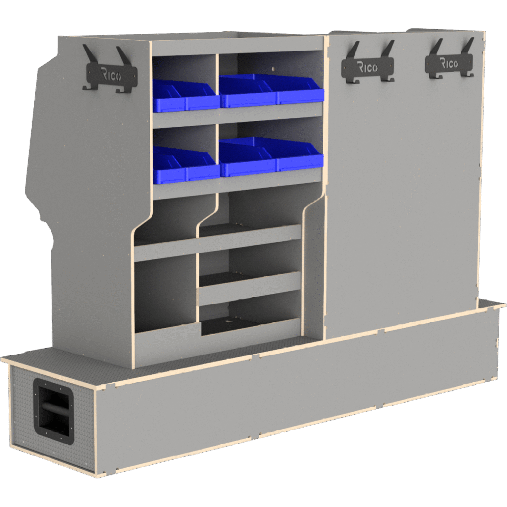 Dette er et helt centralt element, idet en arbejdsbil er fanget i en udfordring mellem altid at have nok værktøj og materialer med og det at benytte den mindst mulige bilmodel og det at binde mindst mulig arbejdskapital i bil, værktøj og materialer. Hos Rico er vi eksperter i at skabe en effektivt og optimeret arbejdsbil der optimalt balancerer denne udfordring.