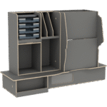 Innredningen leveres ferdig satt sammen i moduler og består av: