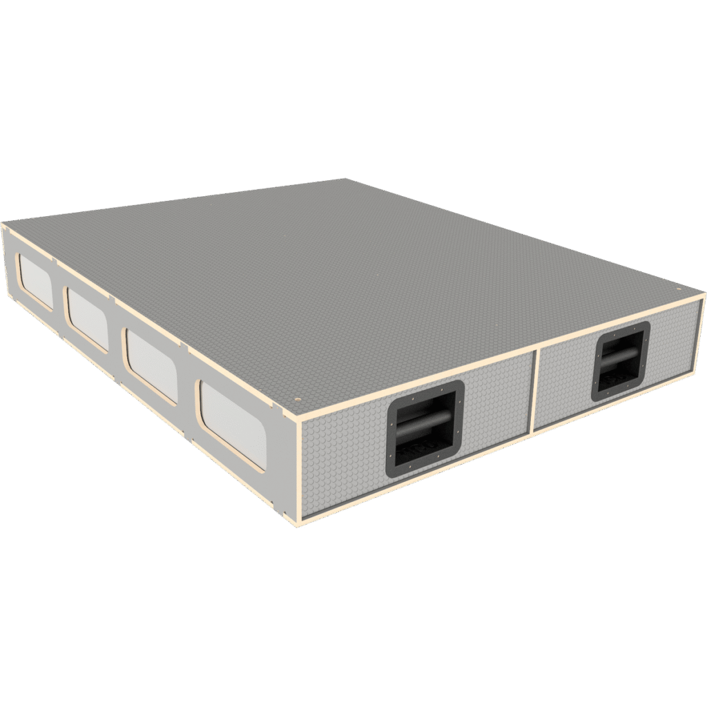 Yderligere giver dobbeltgulvet et lavt tyngdepunkt og en sikker og behagelige køreoplevelse. Krydsfineren har ingen skarpe kanter og er temperaturneutral og behageligt at røre ved med bare hænder.