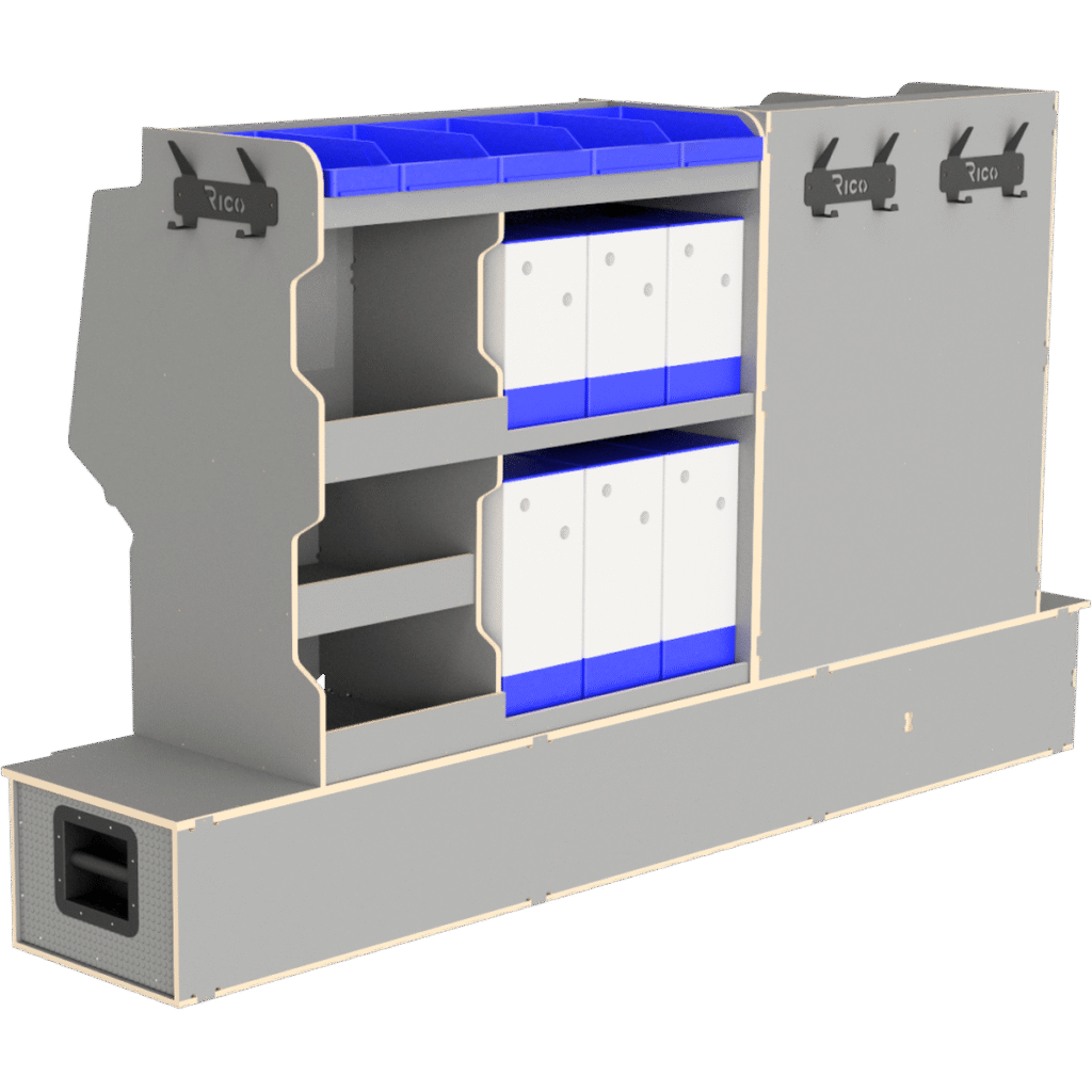 Dette er et helt centralt element, idet en arbejdsbil er fanget i en udfordring mellem altid at have nok værktøj og materialer med og det at benytte den mindst mulige bilmodel og det at binde mindst mulig arbejdskapital i bil, værktøj og materialer. Hos Rico er vi eksperter i at skabe en effektivt og optimeret arbejdsbil der optimalt balancerer denne udfordring.