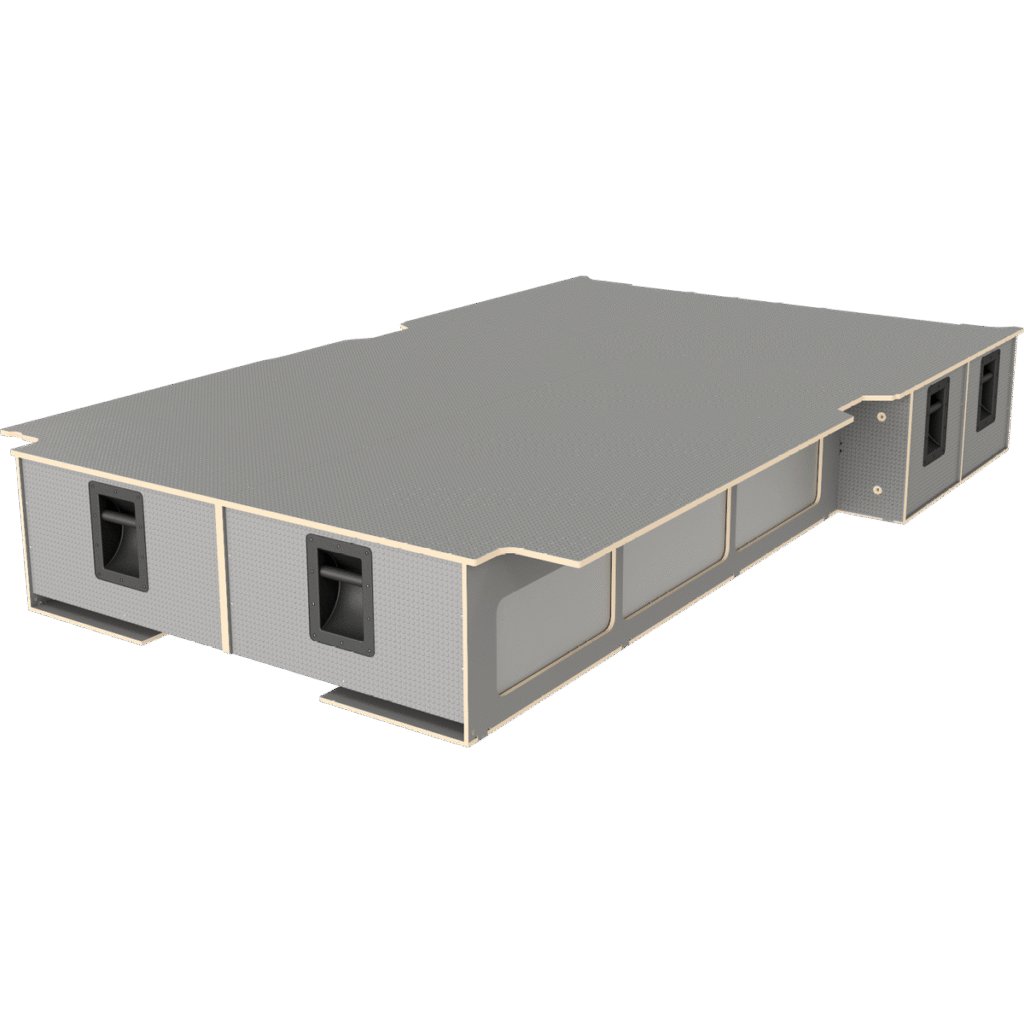 Yderligere giver dobbeltgulvet et lavt tyngdepunkt og en sikker og behagelige køreoplevelse. Krydsfineren har ingen skarpe kanter og er temperaturneutral og behageligt at røre ved med bare hænder.