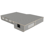 Vi arbejder på at skabe branchens laveste CO2 aftryk. Vi har derfor valgt ikke at benytter metal eller aluminium men primært certificeret (EDP) finsk krydsfiner og der er jo lageret CO2 i træ, så jeres miljøaftryk starter relativt lavt med vores løsning.