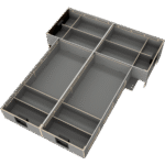 The Raaco case shown in the front left shelving unit is optional and must be ordered separately.