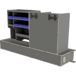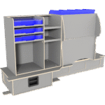 Vi har derfor designet vores hævet dobbeltgulv hvor lange skuffer giver let adgang til materialer og det at vi altid anbefaler skydedøre i begge sider af bilen, der gør, at brugeren aldrig skal ind i bilen.